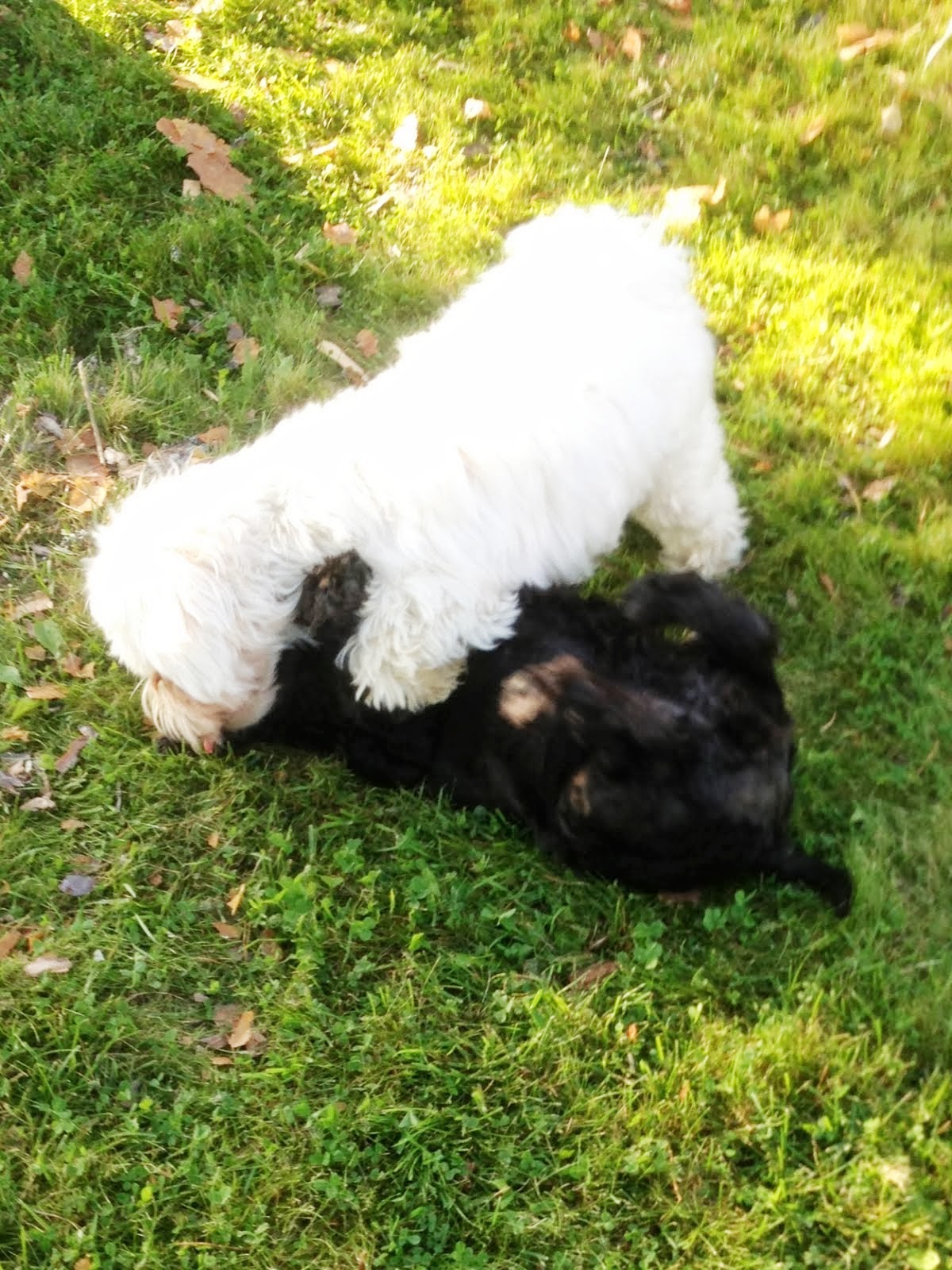 Mimi on mukana ulkotöissä. Ainakin seurana, vahtikoirana. Ja tietty sen pitää nauttia lämpöisestä auringon paisteesta. Niin kauan kuin sitä on.